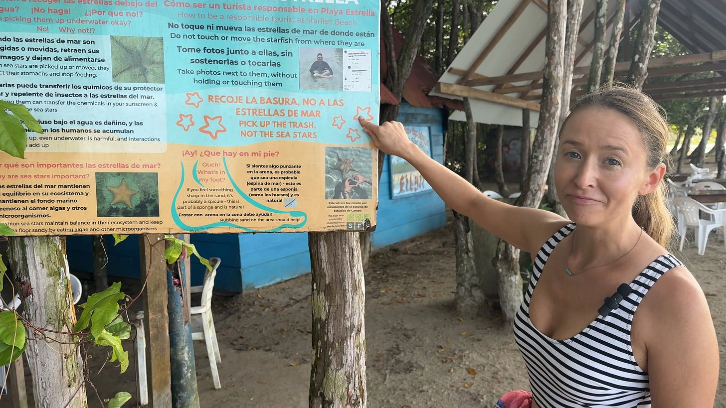 The locals understand the dynamic of the struggle between tourism and the starfish. The growth of one impedes the survival of the other. So they put up signs explaining to new arrivals the harm they cause by picking up the starfish, often killing them.